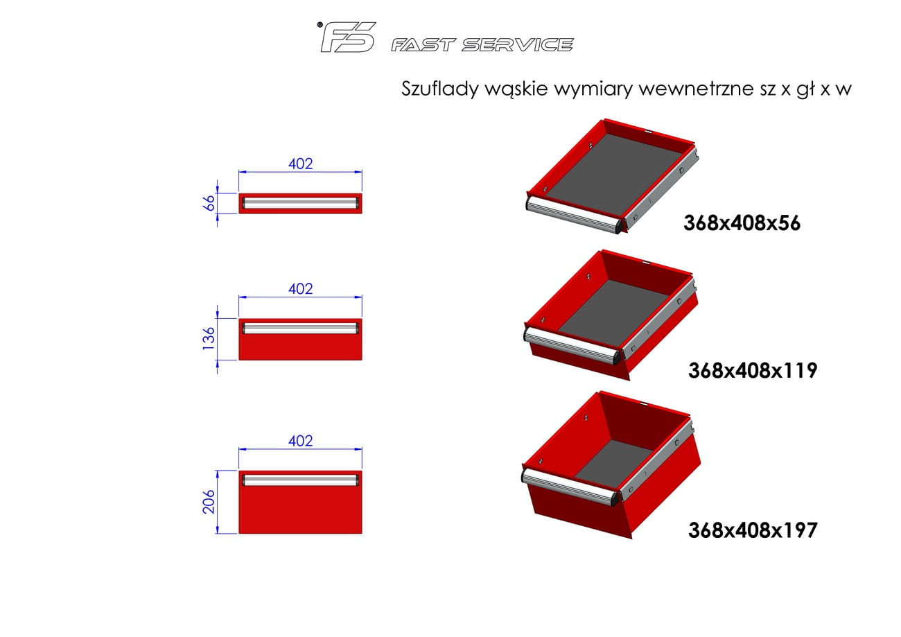 Wymiary użytkowe szuflad: