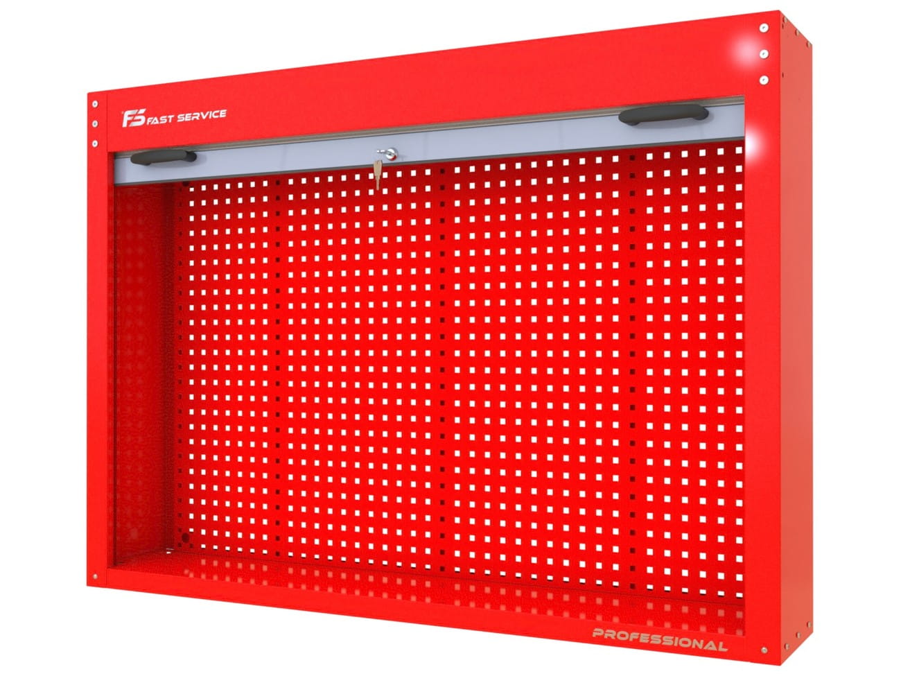 - tylna ściana gabloty wykonana z płyty perforowanej umożliwiającej zamontowanie zawieszek systemowych