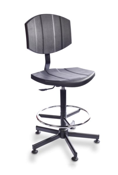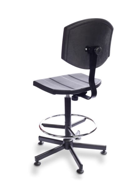 Krzesło warsztatowe z pianki integralnej o bardzo wysokiej odporności na zanieczyszczenia chemiczne. Znajduje zastosowanie w warsztatach, zakładach produkcyjnych o dużym zanieczyszczeniu chemicznym (oleje, smary, woda, itp).