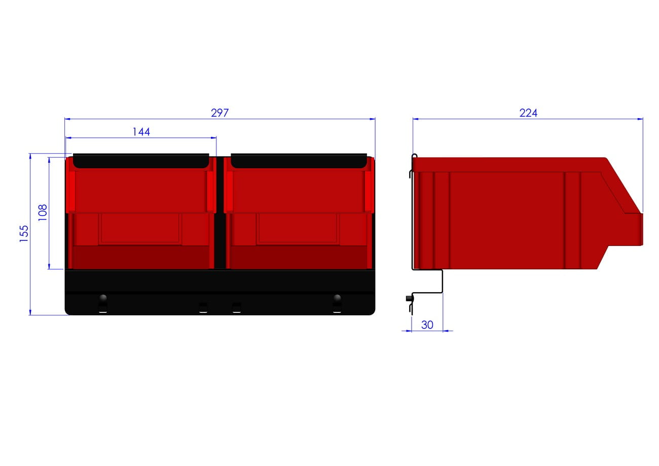 - przystosowana do zawieszenia 2 pojemników P3 o wymiarach: szerokość 144 mm, głębokość 224 mm, wysokość 108 mm