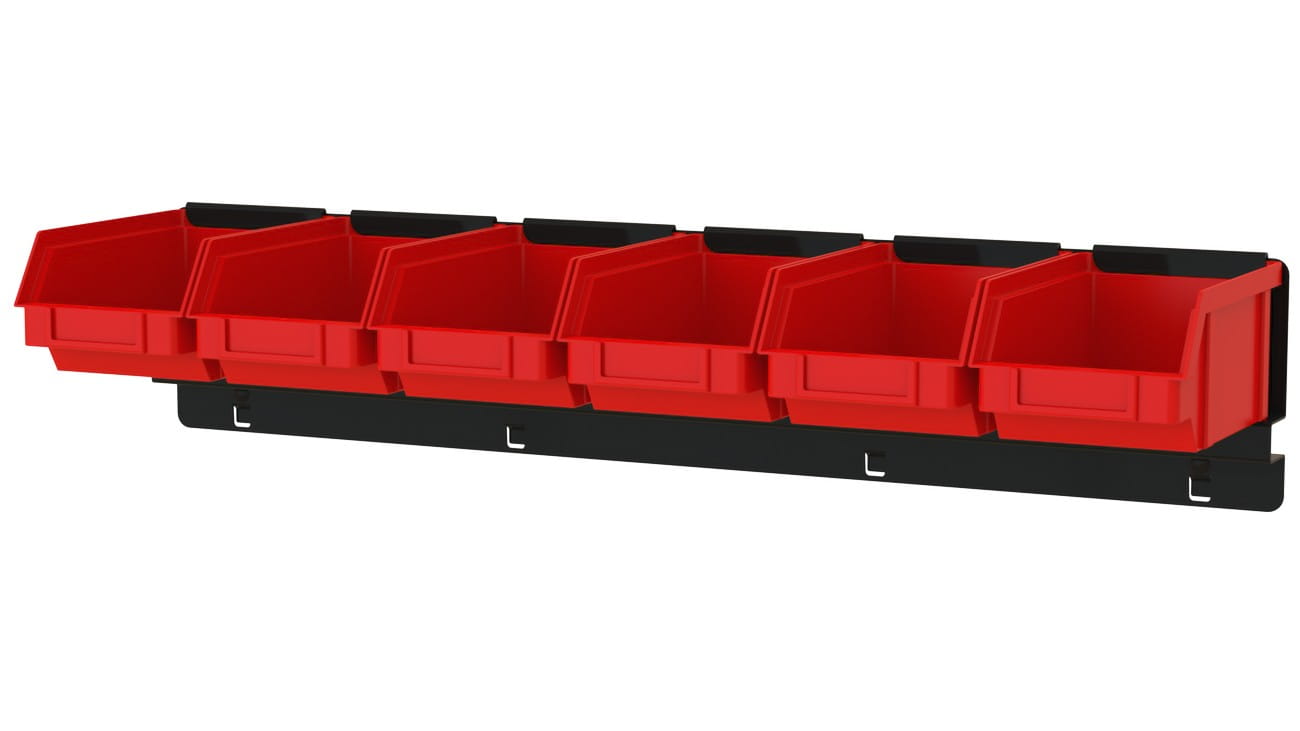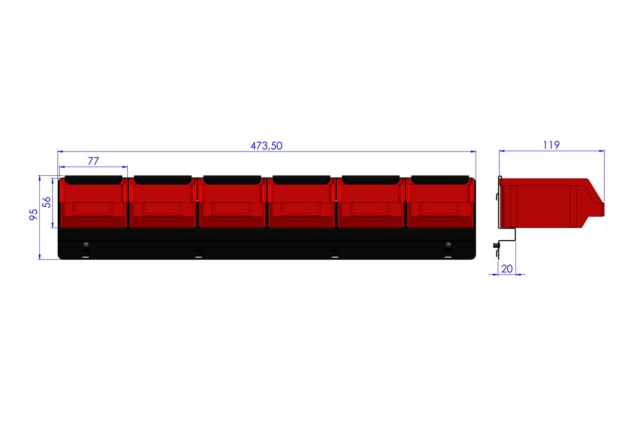 - przystosowana do zawieszenia 6 pojemników P1 o wymiarach: szerokość 77 mm, głębokość 119 mm, wysokość 56 mm