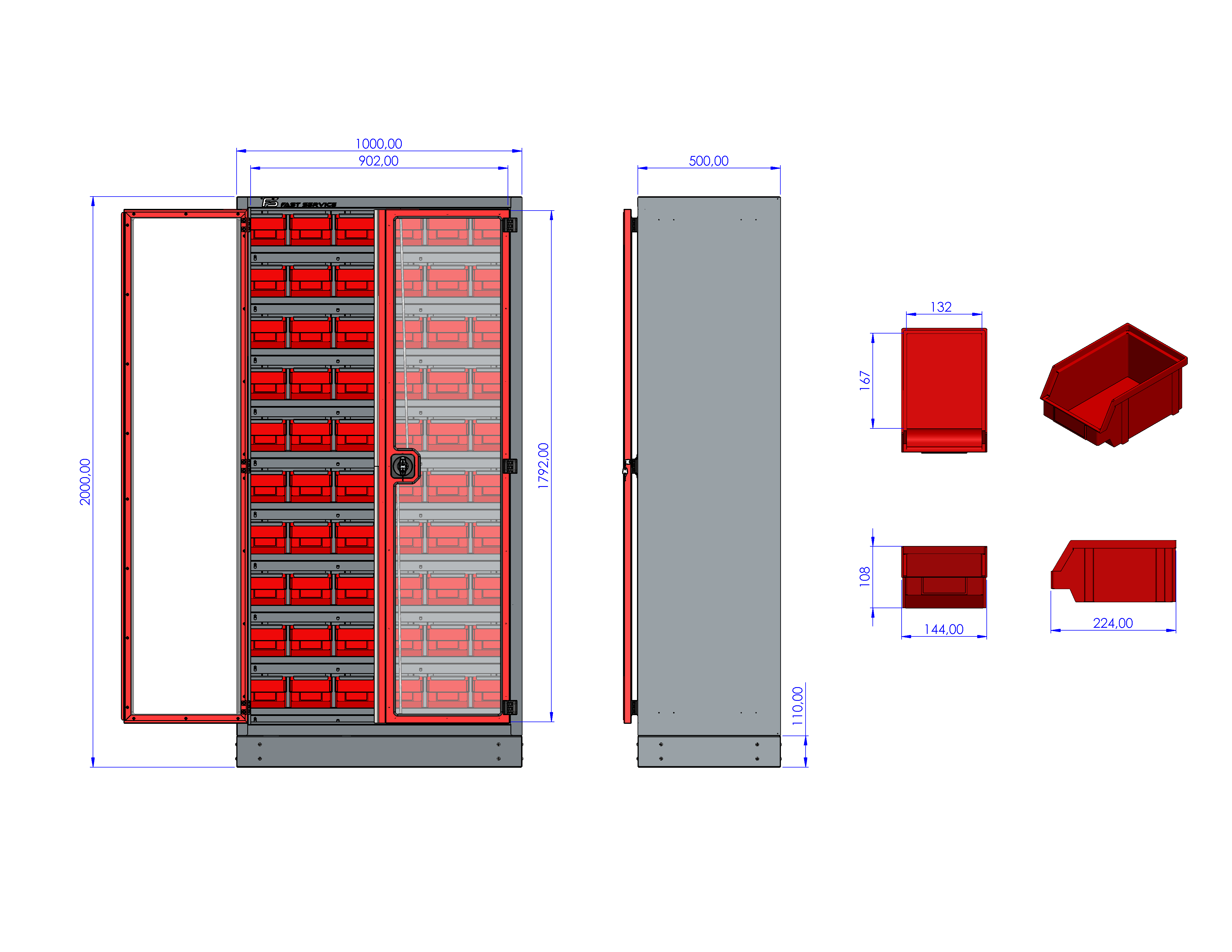 M-3-01-06-P2 Szafa Warsztatowa z pojemnikami P2 i przeszklonymi drzwiami