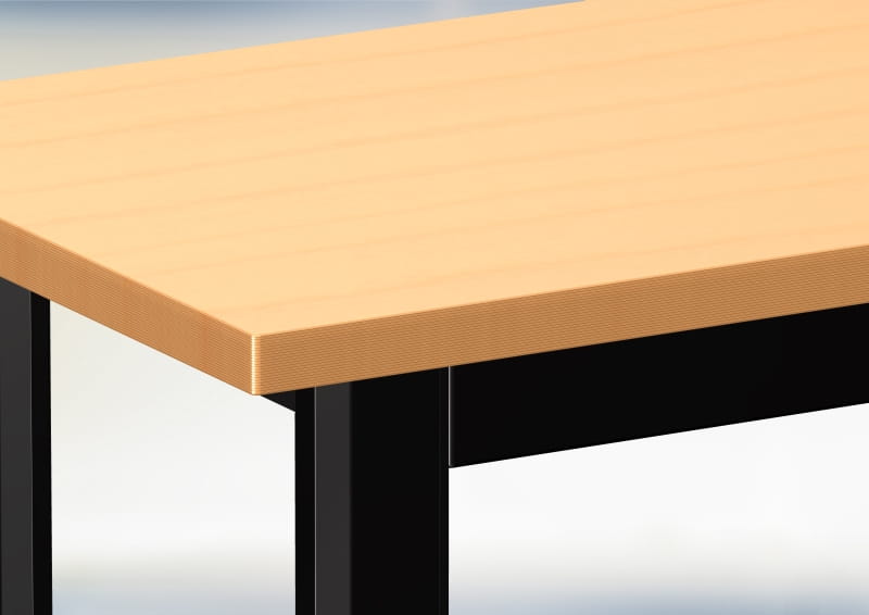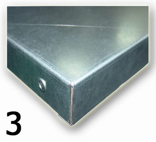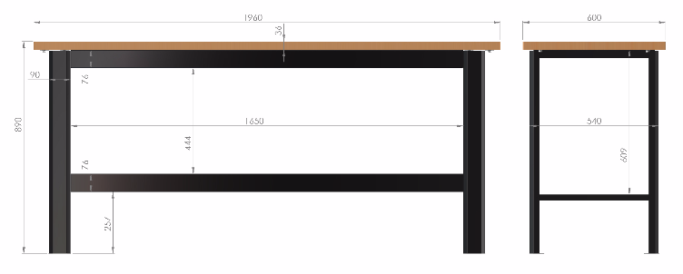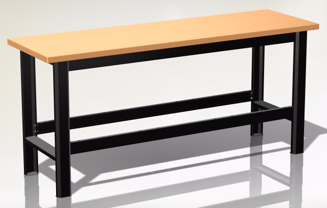 - Blat wykonany ze sklejki o grubości 40 mm, dodatkowo wyłożony ocynkowaną blachą o grubości 1,0 mm blacha zagięta pod kątem prostym na bokach oraz z tyłu, przód zagięty i podgięty pod spód blatu. Nakładkę z blachy ocynkowanej można zawsze wymienić po dłuższym okresie eksploatacji