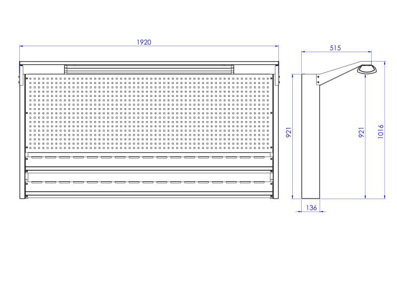 N-4-09-04 Tablica na narzędzia 920mm x 1920mm x 135mm z oświetleniem