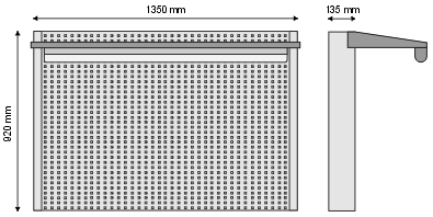 - Wymiary: wys. 920 mm x szer. 1350 mm x głęb. 135 mm