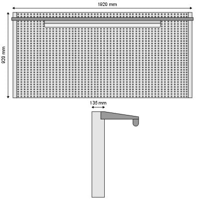N-4-11-04 Tablica na narzędzia 920mm x 1920mm x 135mm z samą kratownicą z oświetleniem