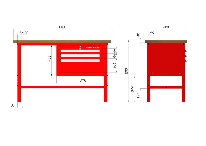 - solidna konstrukcja stołu warsztatowego wykonana jest z kształtownika 50 x 50 x 2 mm