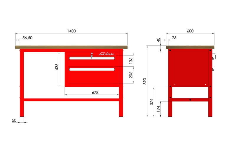 - solidna konstrukcja stołu warsztatowego wykonana jest z kształtownika 50 x 50 x 2 mm