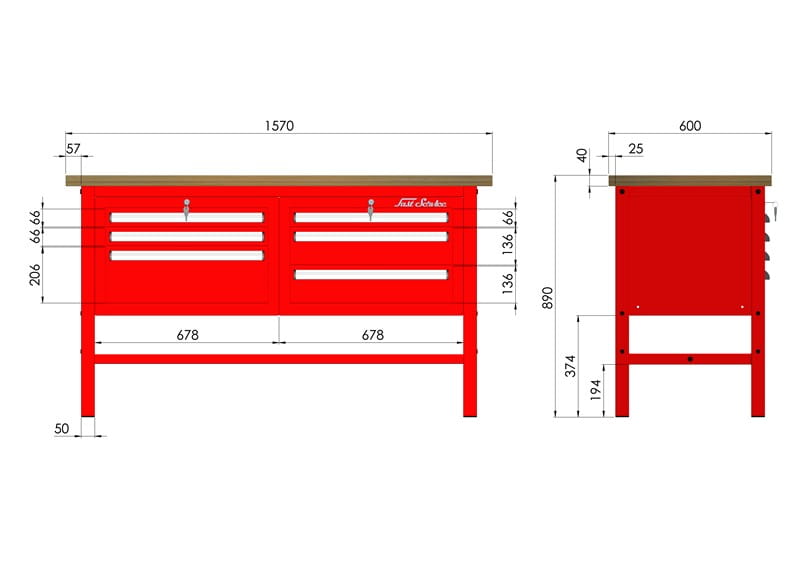 - solidna konstrukcja stołu warsztatowego wykonana jest z kształtownika 50 x 50 x 2 mm