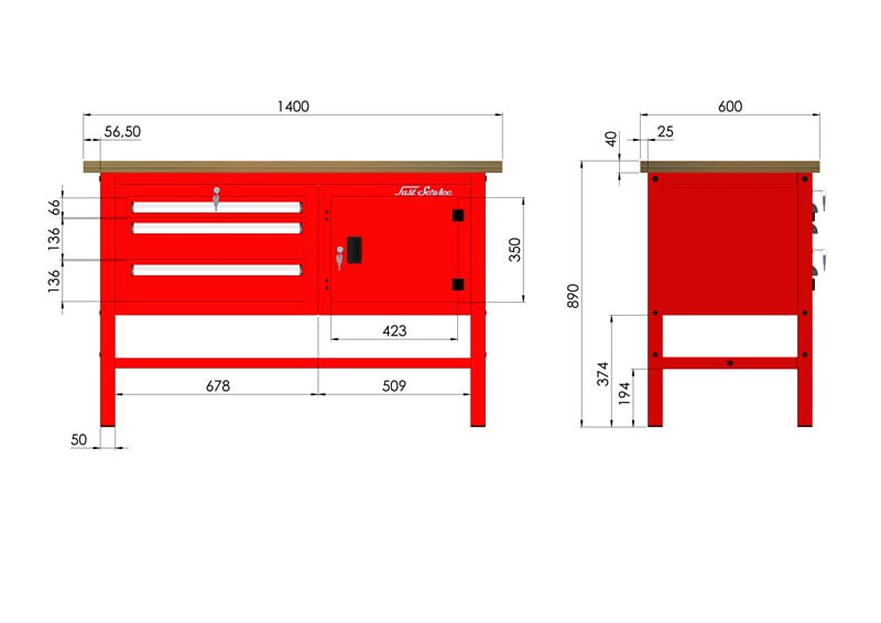 - solidna konstrukcja stołu warsztatowego wykonana jest z kształtownika 50 x 50 x 2mm