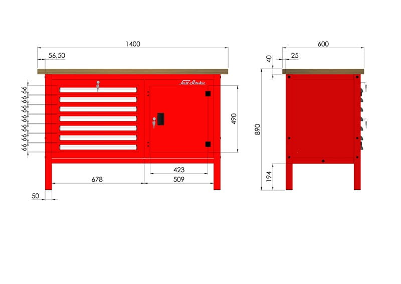 - solidna konstrukcja stołu warsztatowego wykonana jest z kształtownika 50 x 50 x 2 mm