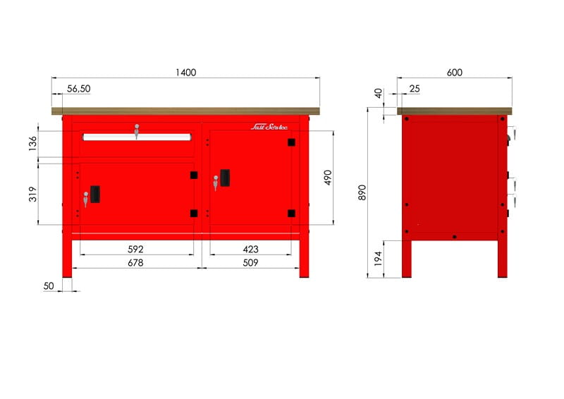 - solidna konstrukcja stołu warsztatowego wykonana jest z kształtownika 50 x 50 x 2 mm