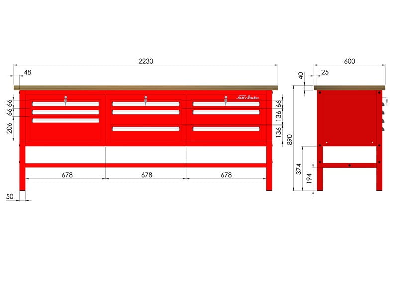 | Rozmiar blatu | Szerokość 2230mm, głębokość 600mm |