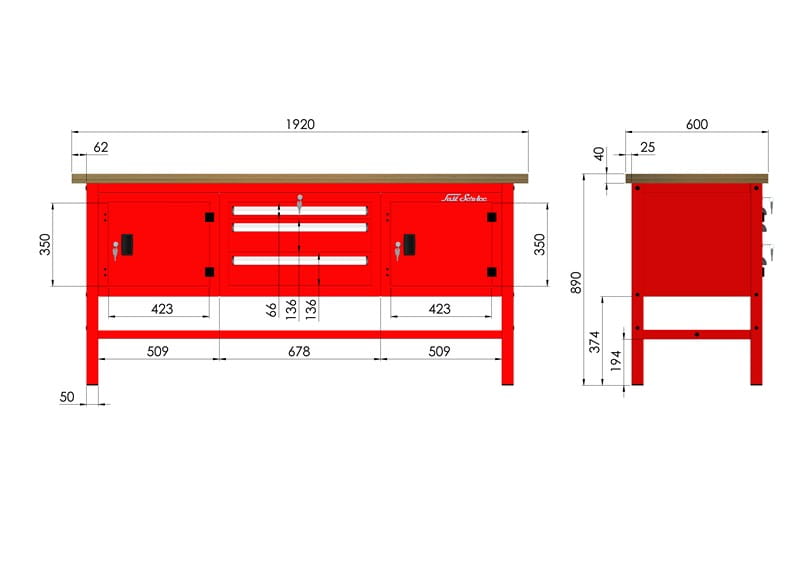 - solidna konstrukcja stołu warsztatowego wykonana jest z kształtownika 50 x 50 x 2 mm