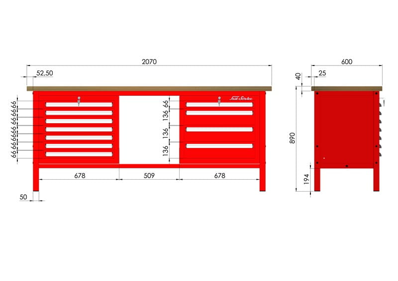 - solidna konstrukcja stołu warsztatowego wykonana jest z kształtownika 50 x 50 x 2 mm