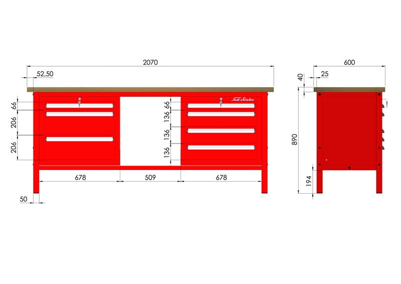 - solidna konstrukcja stołu warsztatowego wykonana jest z kształtownika 50 x 50 x 2 mm