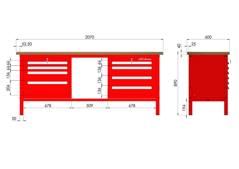 - solidna konstrukcja stołu warsztatowego wykonana jest z kształtownika 50 x 50 x 2 mm