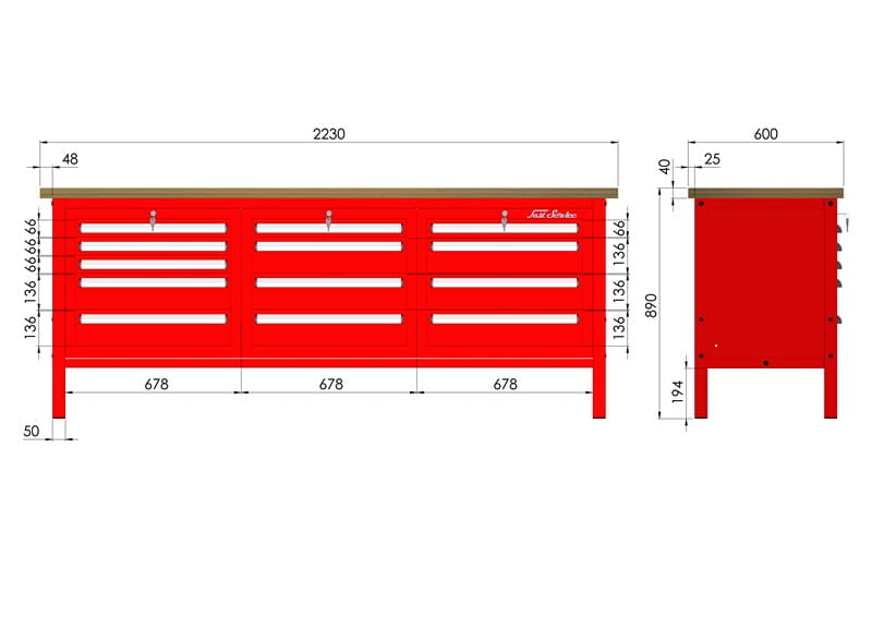 | Rozmiar blatu | Szerokość 2230mm, głębokość 600mm |