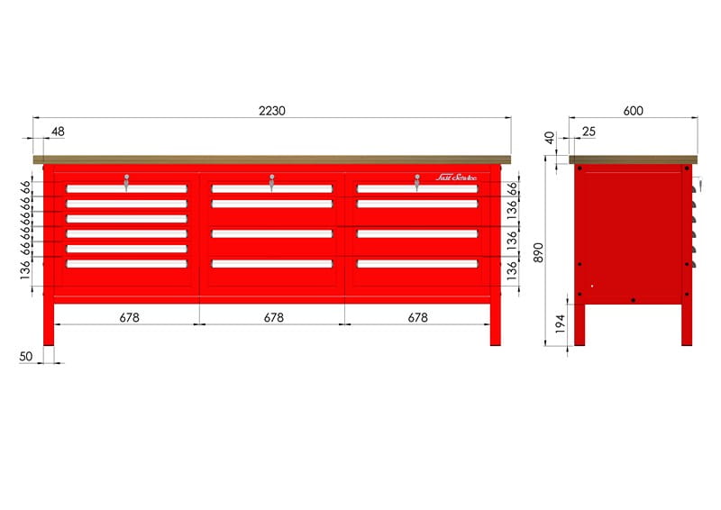 | Rozmiar blatu | Szerokość 2230mm, głębokość 600mm |