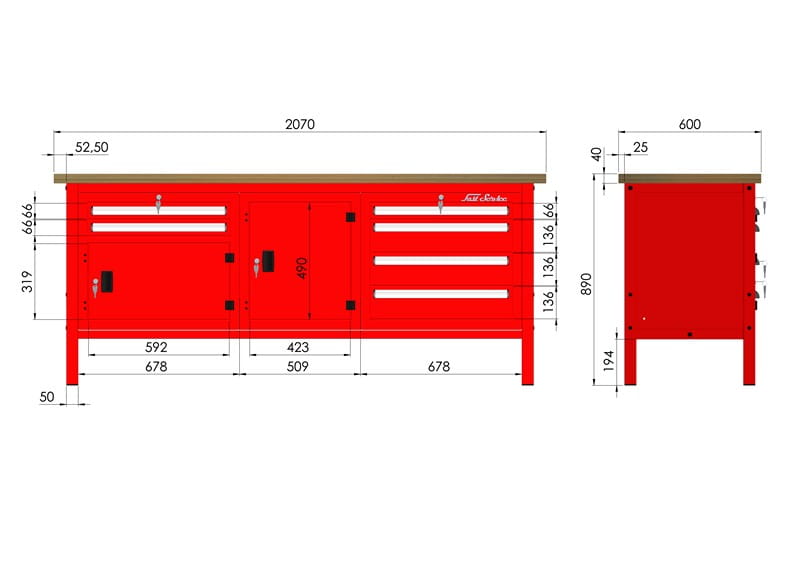 - solidna konstrukcja stołu warsztatowego wykonana jest z kształtownika 50 x 50 x 2 mm