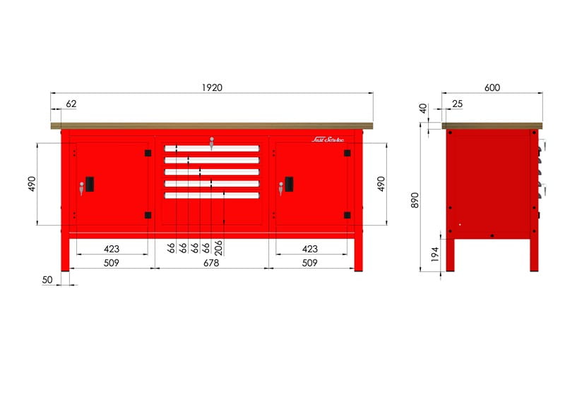 - solidna konstrukcja stołu warsztatowego wykonana jest z kształtownika 50x50x2mm