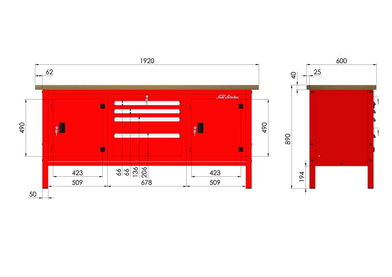 - solidna konstrukcja stołu warsztatowego wykonana jest z kształtownika 50x50x2mm