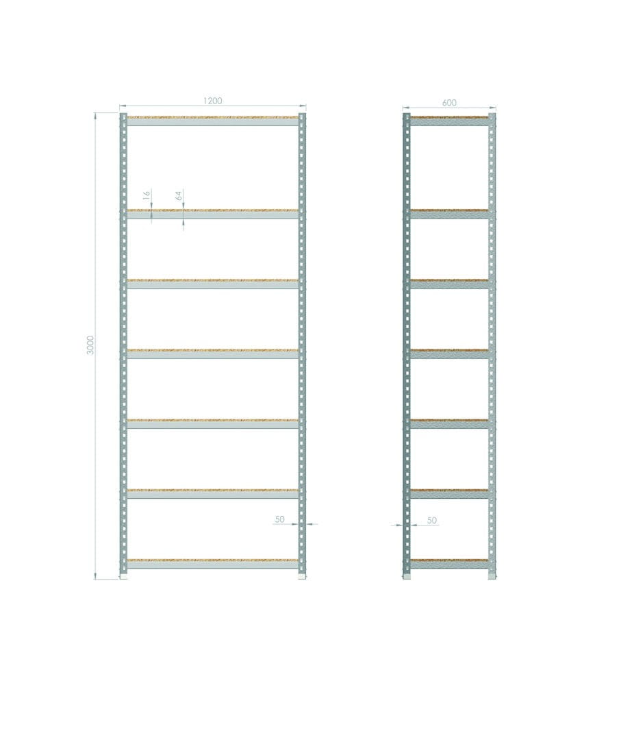 Regał magazynowy 3000x1200x600 - 7 półkowy R-1-04-01