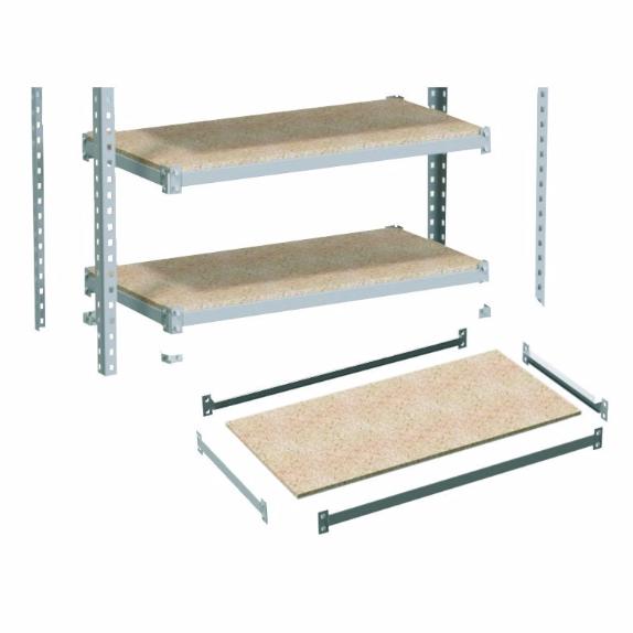 - Dzięki zastosowaniu specjalnych zaczepów montażowych do połączenia poprzeczki z nogą regału uzyskaliśmy znacznie większe obciążenie statyczne półki do 290 kg