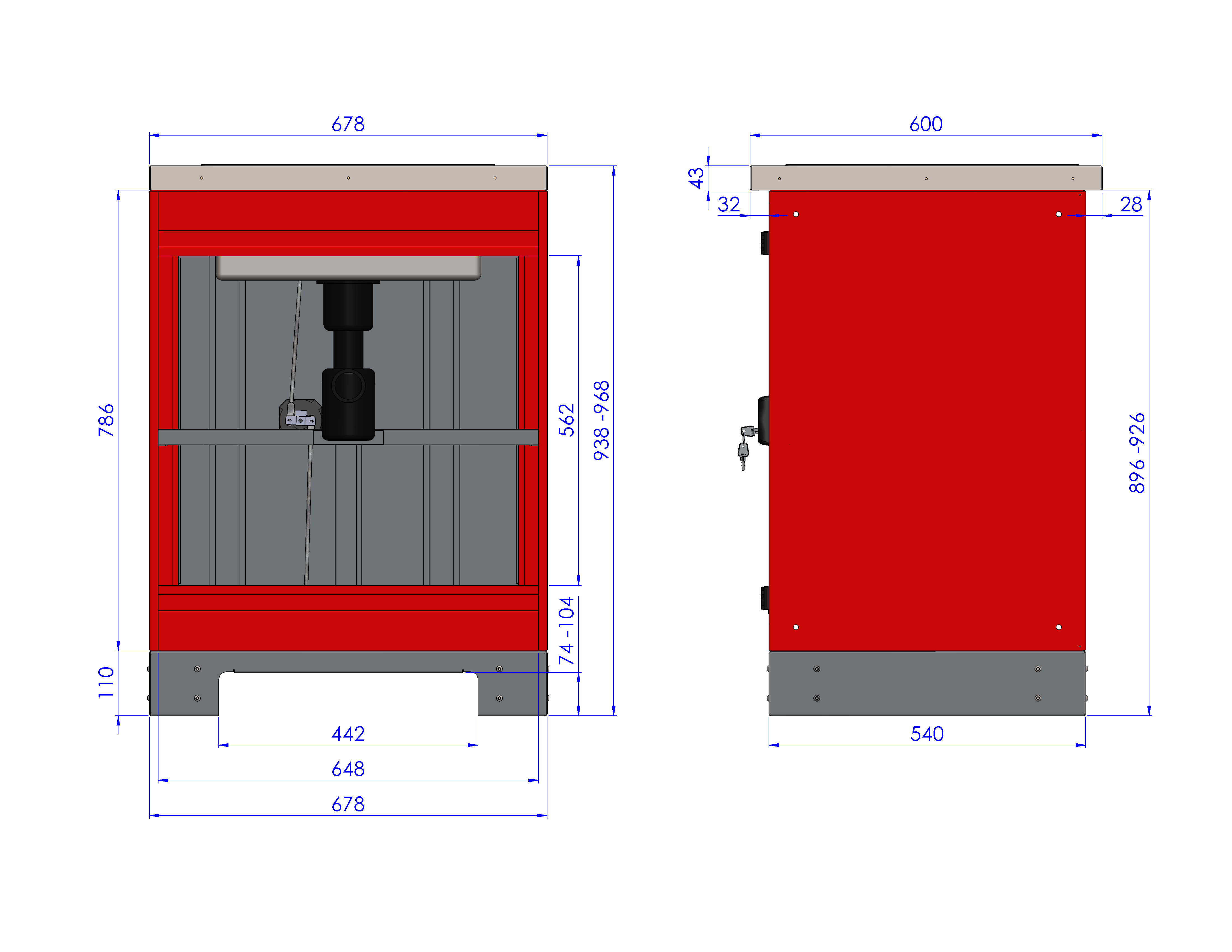 – pojedyncza komora zamykana podwójnymi drzwiami oraz dodatkowo zamkiem baskwilowym z dwoma kluczami w komplecie