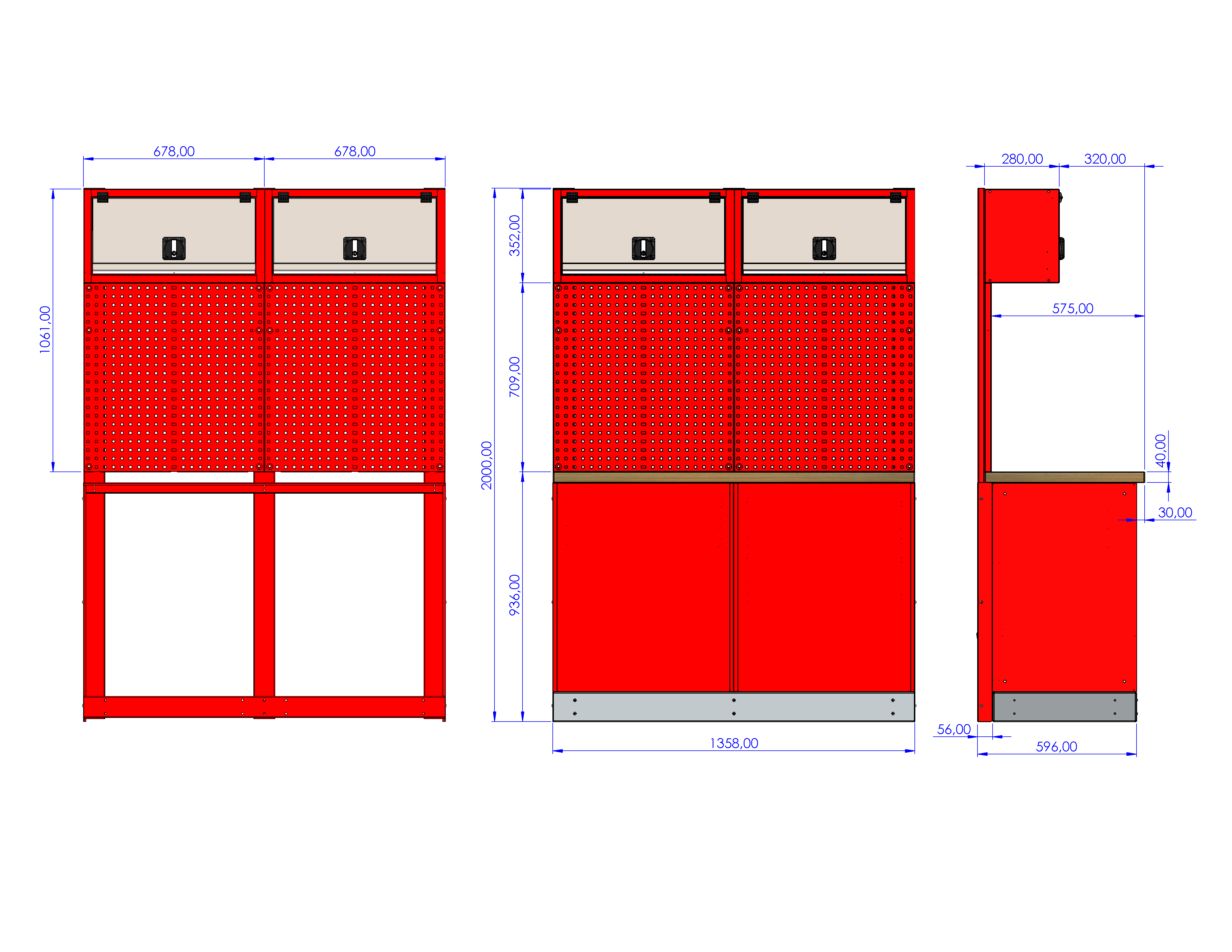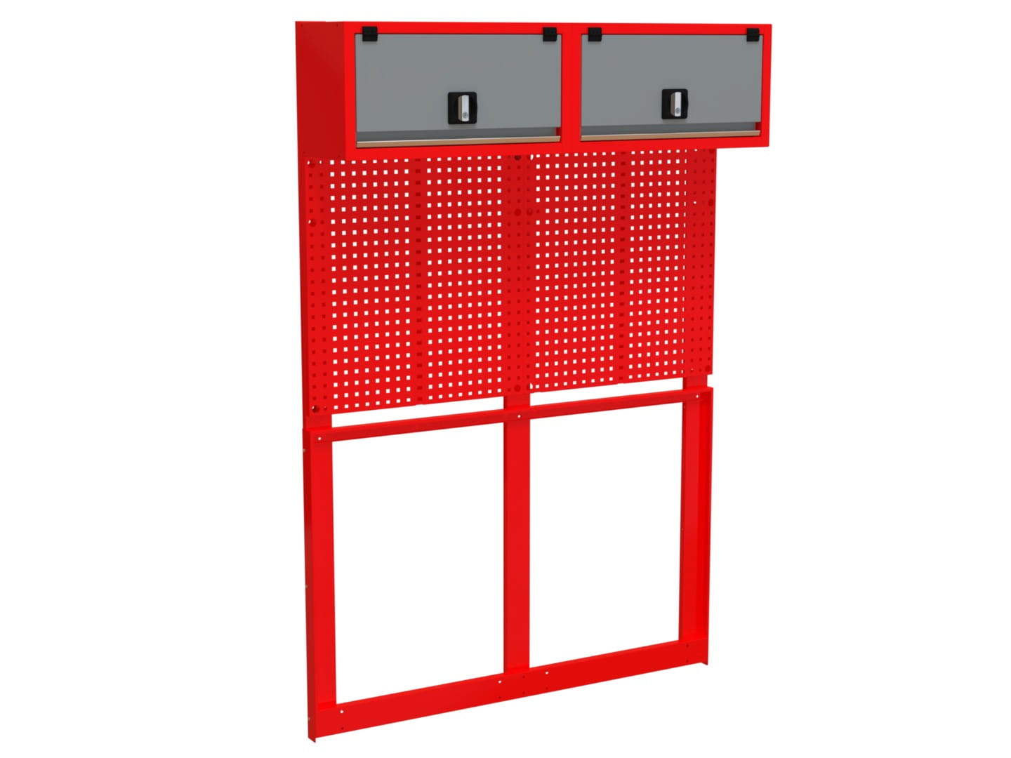 - Perforacja tylnej ściany: oczka 10x10 mm w rozstawie co 32 mm, dające pełną swobodę w organizacji narzędzi.