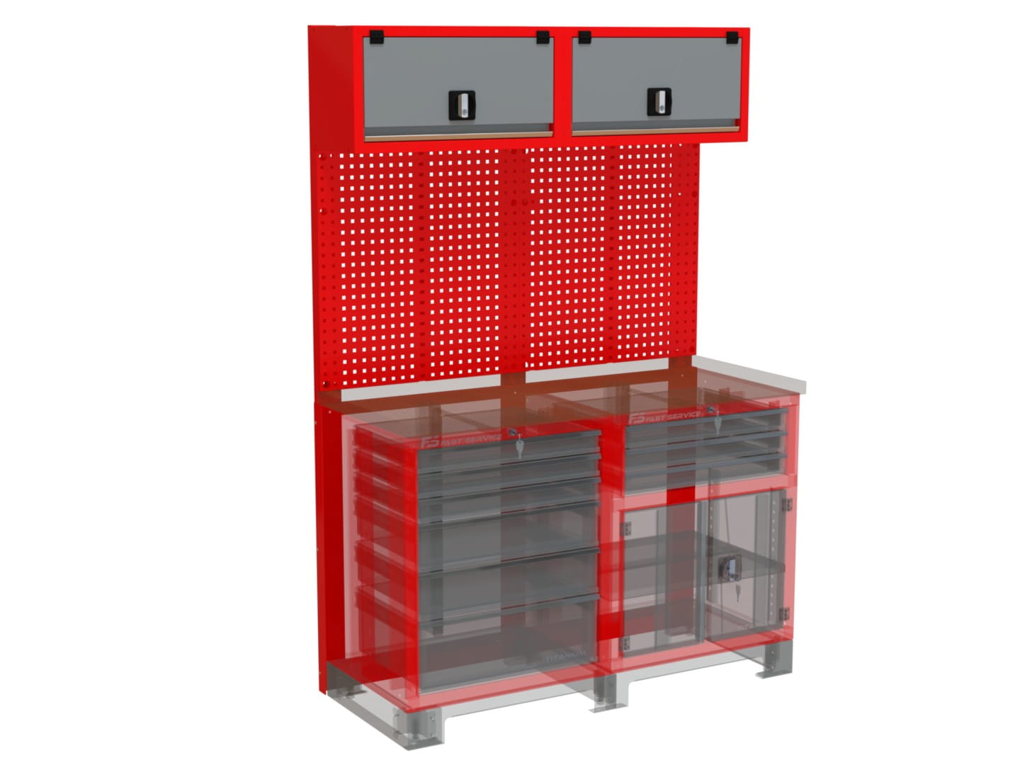 Tablica NT140-03 jest kompatybilna z szafkami warsztatowymi z linii Titanium, co pozwala na dalsze rozbudowanie stanowiska zgodnie z potrzebami użytkownika.