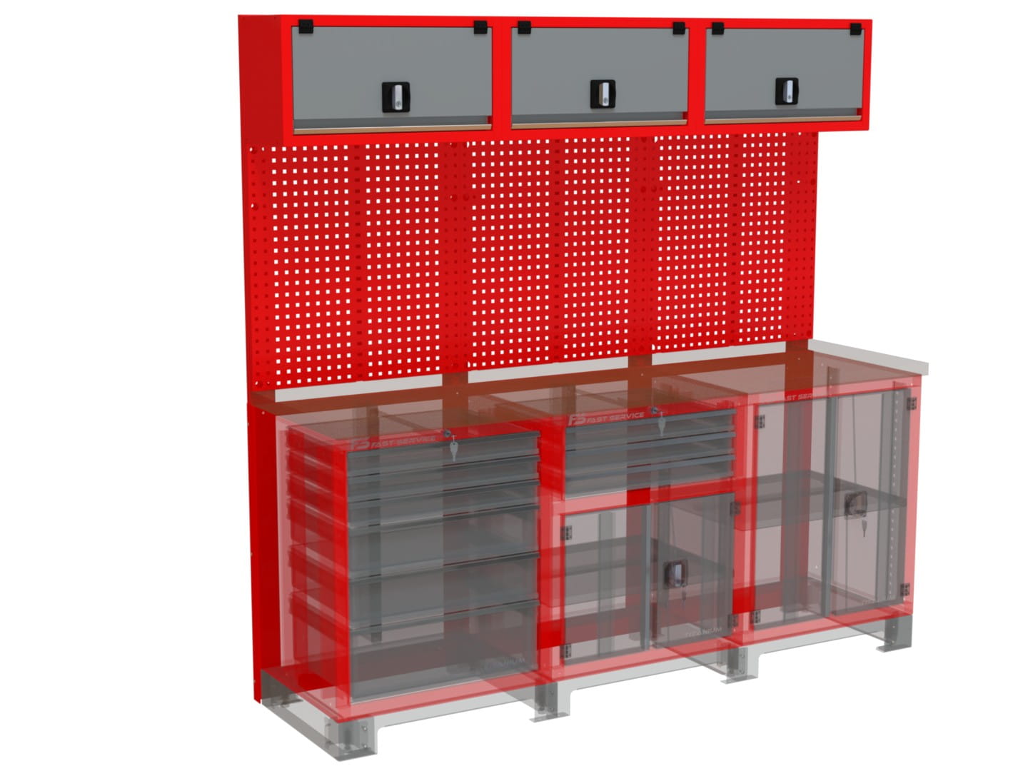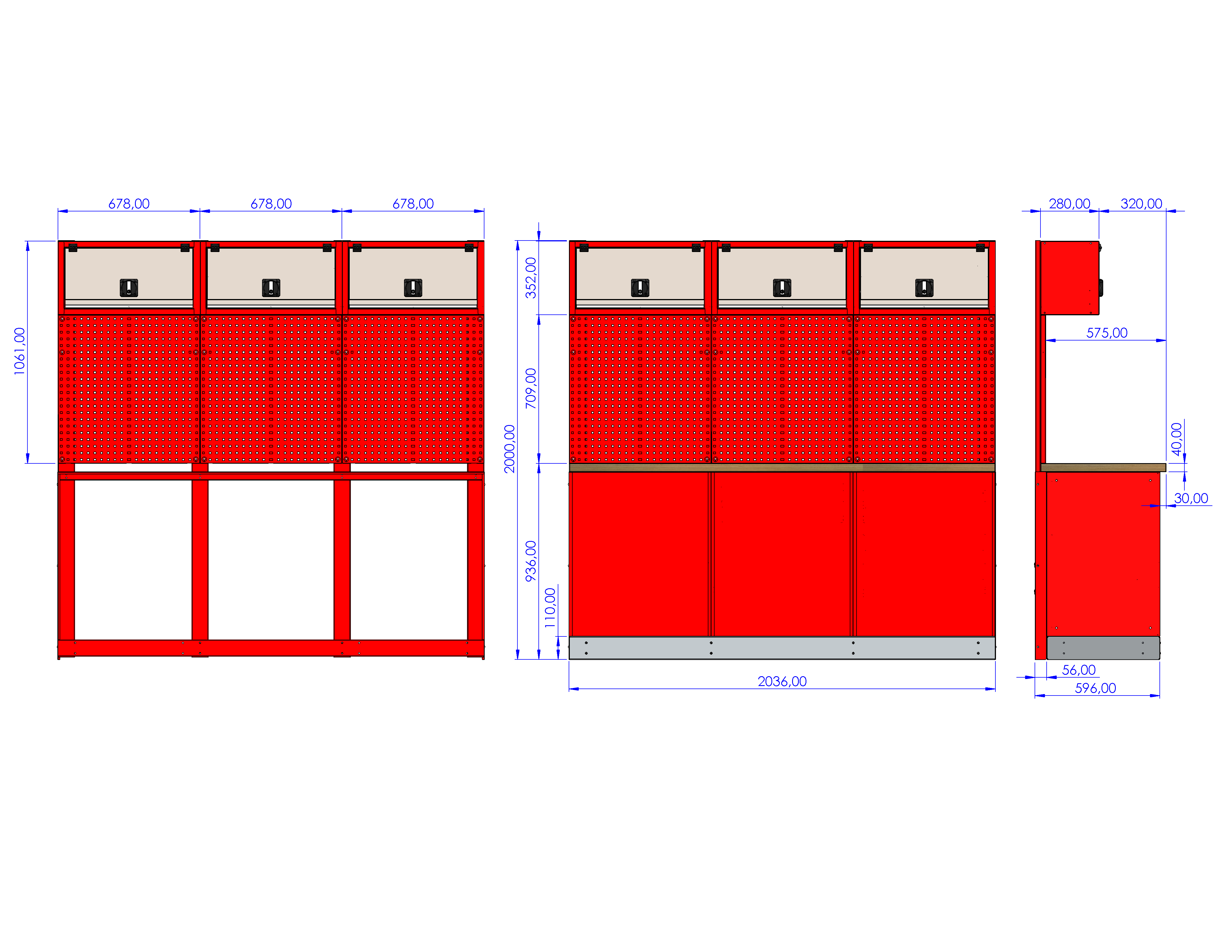 Tablica NT210-03 to trzyczęściowe stanowisko warsztatowe, które zapewnia optymalną przestrzeń do przechowywania narzędzi i organizacji miejsca pracy dzięki zastosowaniu pojemnych szafek na całej szerokości tablicy. To doskonałe rozwiązanie dla warsztatów wymagających dużej powierzchni użytkowej i doskonałej organizacji.