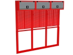 - Tablica perforowana: wykonana z wysokiej jakości blachy stalowej o grubości 1,0 mm. Perforacja o wymiarach oczek 10x10 mm z rozstawem co 32 mm umożliwia elastyczne rozmieszczenie zawieszek narzędziowych.