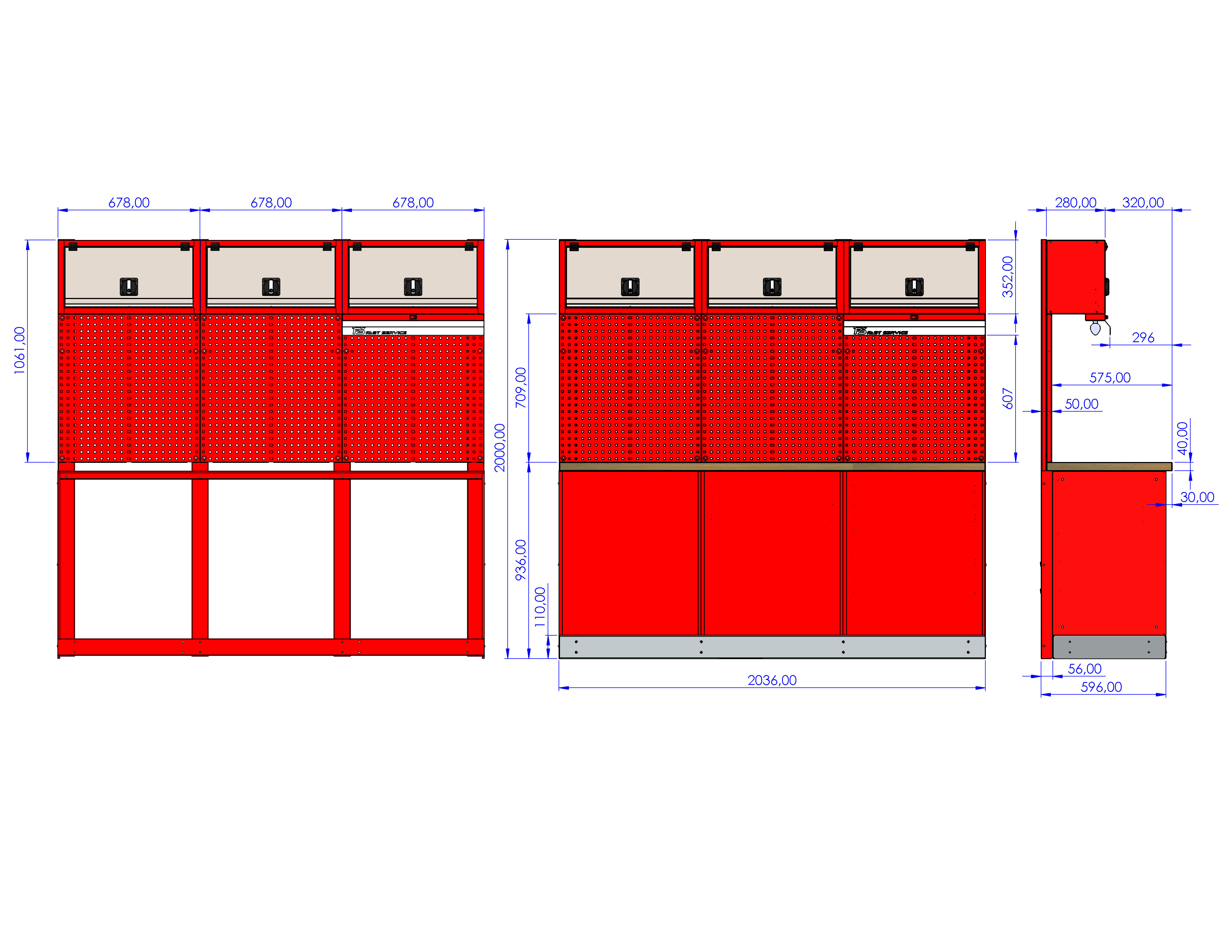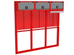 - Tylna ściana perforowana umożliwiająca montaż zawieszek systemowych (oczko 10x10 mm w rozstawie co 32 mm).