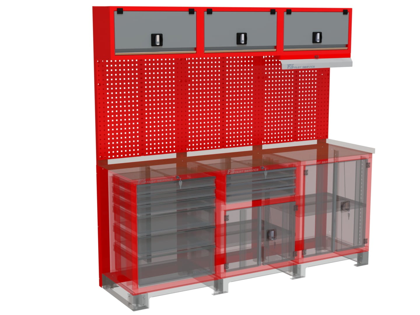 Tablica jest w pełni kompatybilna z szafkami warsztatowymi linii Titanium, co umożliwia rozszerzenie stanowiska o dodatkowe elementy w przyszłości.