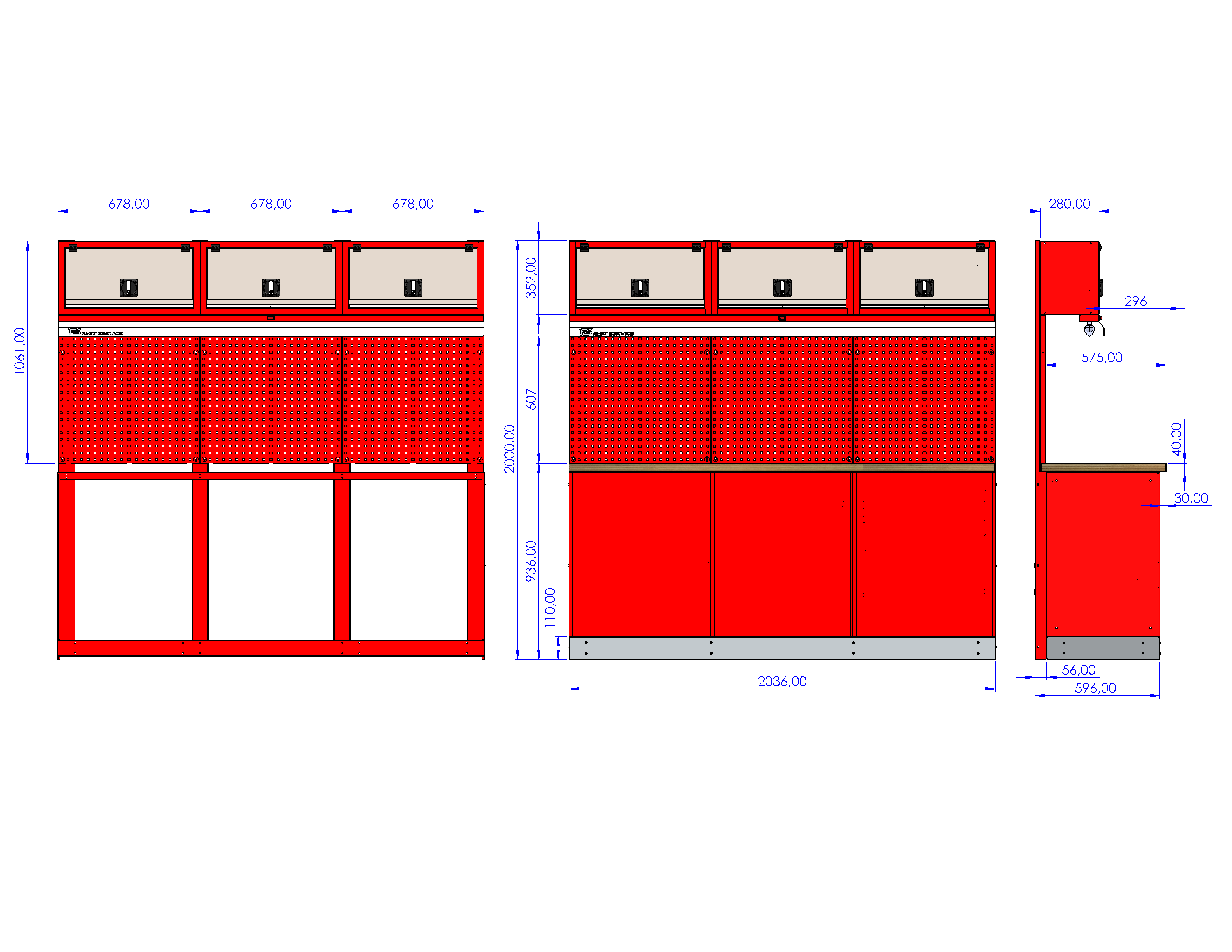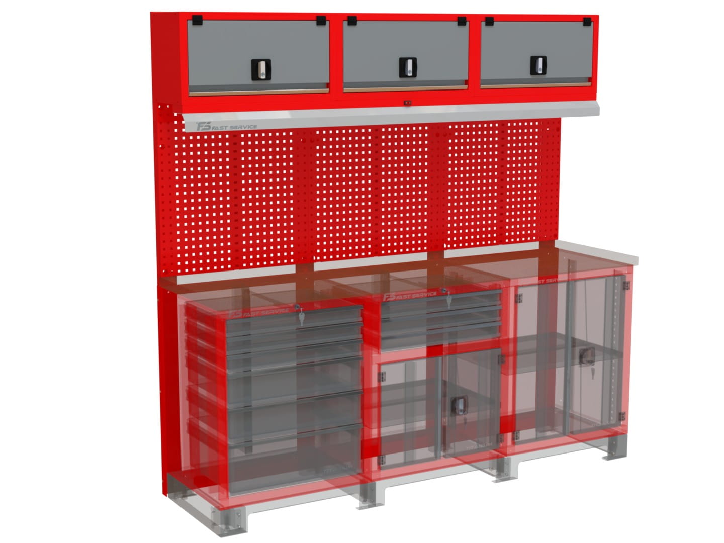 Tablica NT210-04 to trzyczęściowe stanowisko warsztatowe, które łączy w sobie funkcjonalność pojemnych szafek z wygodą i wydajnością oświetlenia LED na całej szerokości tablicy. To idealne rozwiązanie dla wymagających użytkowników, którzy oczekują maksymalnej organizacji i doskonałego oświetlenia w miejscu pracy.