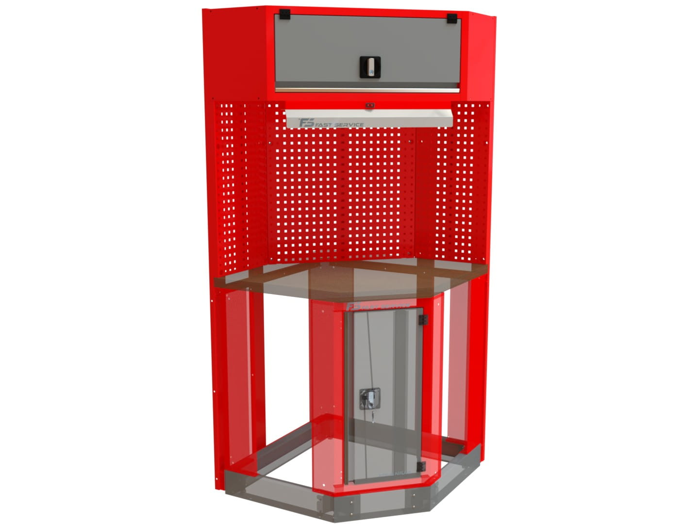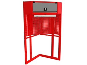 Tablica narzędziowa narożna NT NAR-04 – stanowisko warsztatowe z szafką wiszącą i oświetleniem