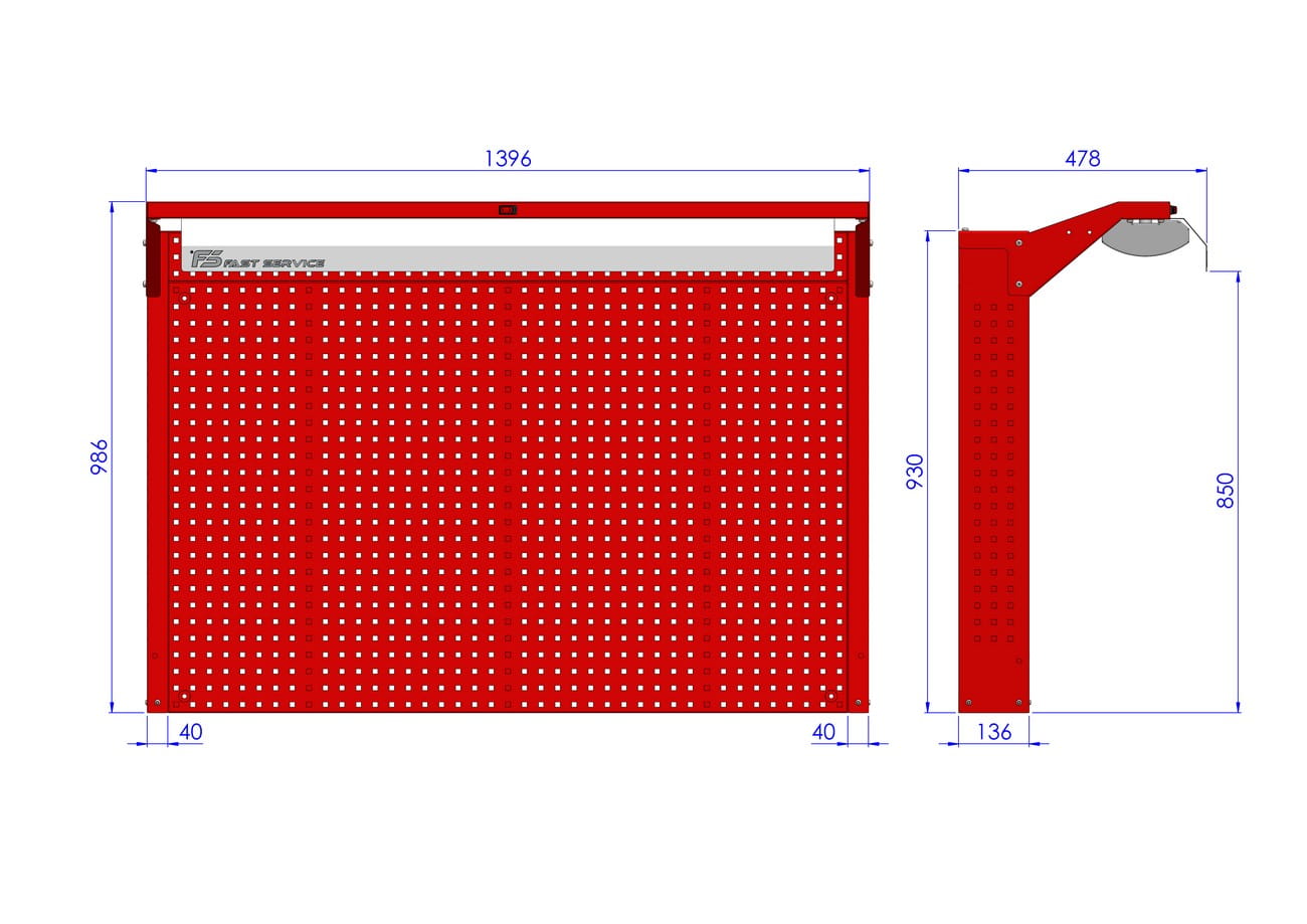 - tylna ściana tablicy wykonana z płyty perforowanej umożliwiającej zamontowanie zawieszek systemowych