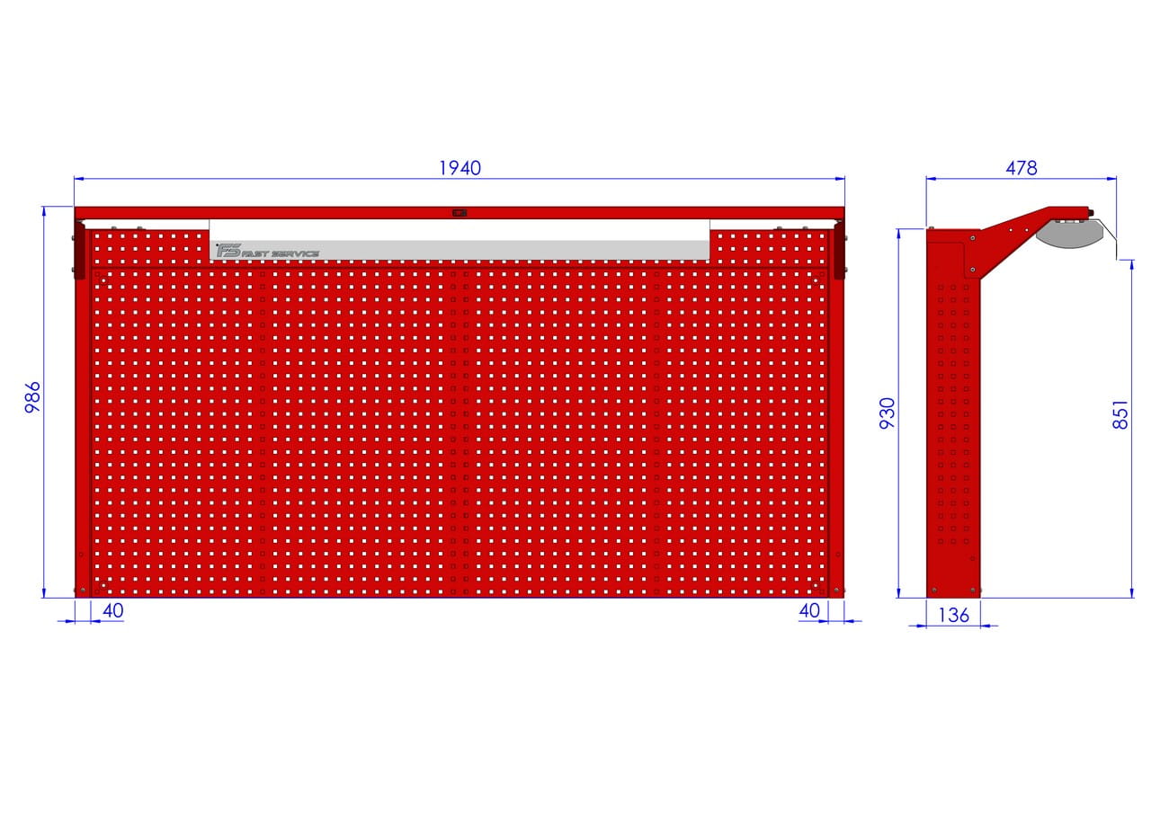 - tylna ściana tablicy wykonana z płyty perforowanej umożliwiającej zamontowanie zawieszek systemowych
