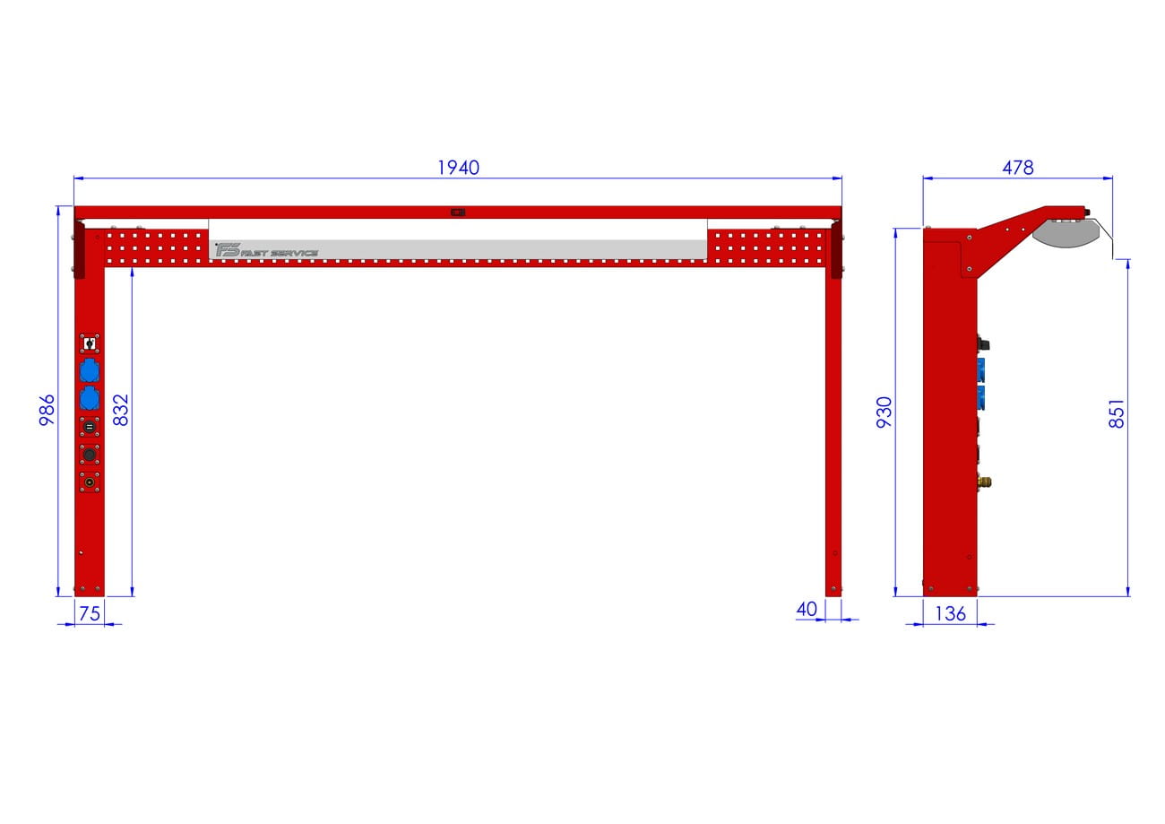 - szybkozłącze sprężonego powietrza tylne pod króciec NW 7,2 z przewodem polietylenowym o długości 2,0m (możliwość konfiguracji)