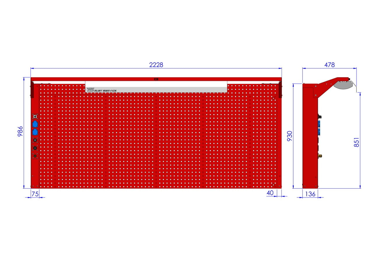 - tylna ściana tablicy wykonana z płyty perforowanej umożliwiającej zamontowanie zawieszek systemowych