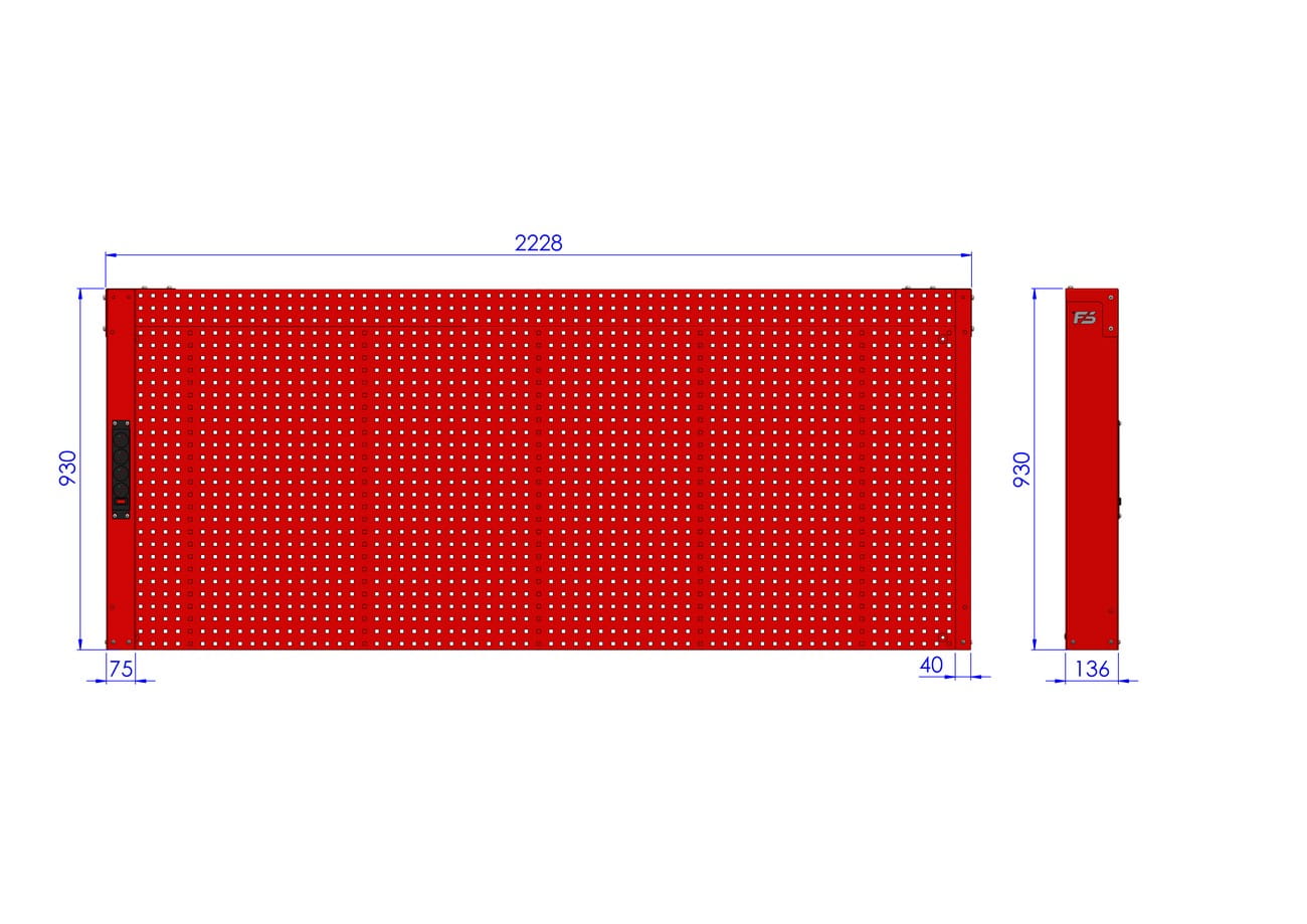 - tylna ściana tablicy wykonana z płyty perforowanej umożliwiającej zamontowanie zawieszek systemowych