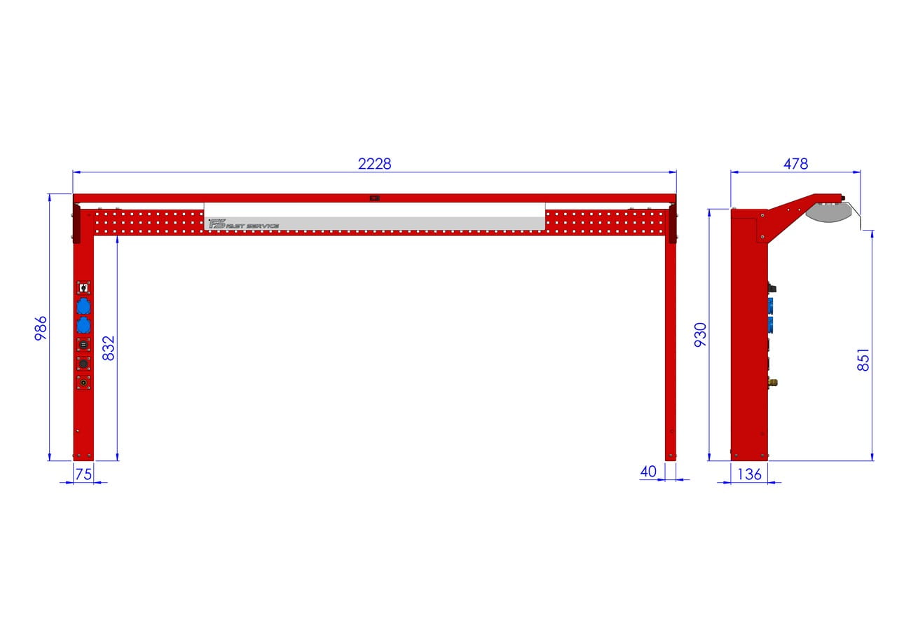 - nogi tablicy posiadają perforację umożliwiającej zamontowanie zawieszek systemowych