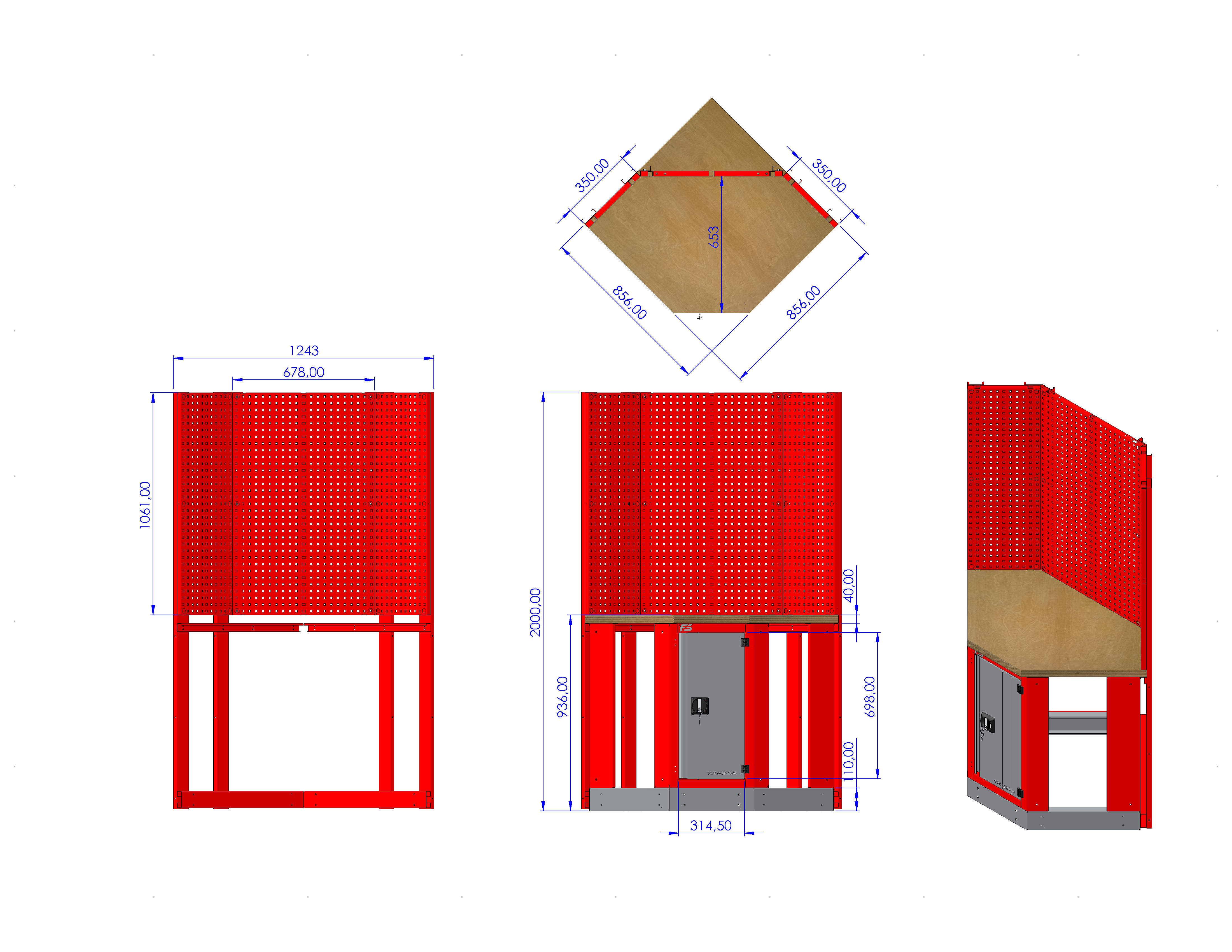 Tablica narzędziowa narożna NT NAR-01 to praktyczne rozwiązanie stworzone specjalnie z myślą o optymalnym wykorzystaniu przestrzeni warsztatowej. Jej narożna konstrukcja pozwala na efektywne zagospodarowanie miejsca w rogu stanowiska pracy, a perforowana tylna ściana umożliwia wygodną organizację narzędzi, zachowując porządek i estetykę.