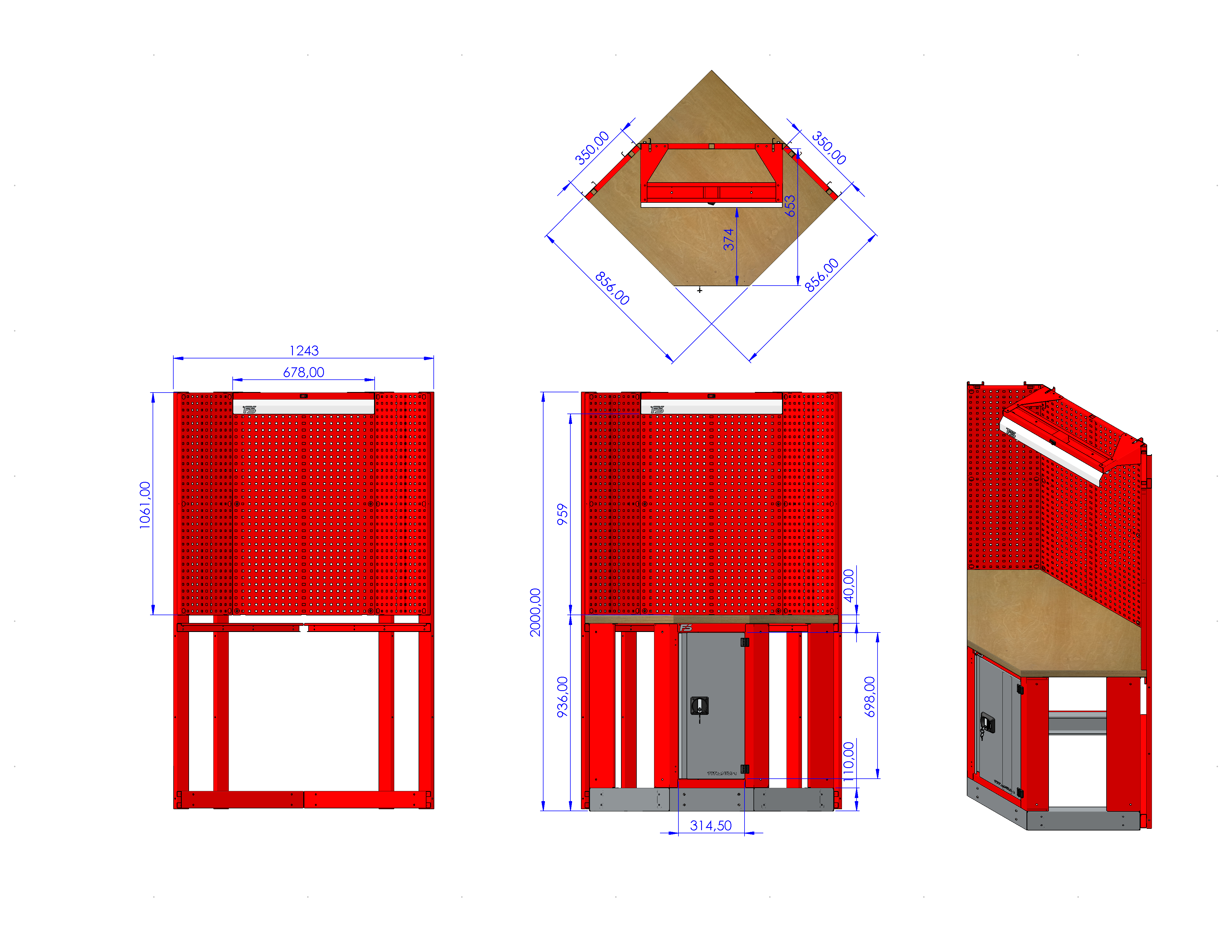 - Zaprojektowana do ustawienia w narożniku warsztatu, pozwala na maksymalne wykorzystanie przestrzeni roboczej.