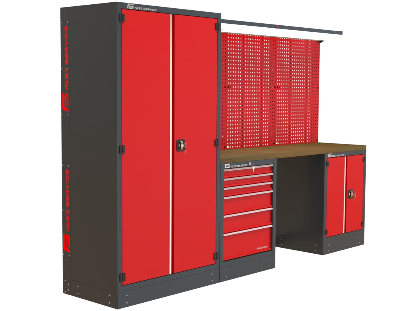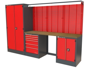 Zestaw MAXI-1 jest idealnym rozwiązaniem dla profesjonalnych serwisów, warsztatów montażowych oraz zakładów produkcyjnych, które wymagają obszernej przestrzeni roboczej, dużej ilości miejsca do przechowywania oraz mocnego oświetlenia LED nad stanowiskiem pracy.