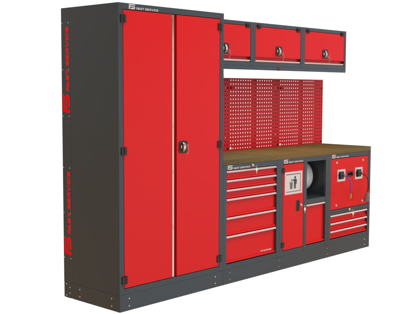 Szafka warsztatowa T-51 – moduł wyposażony w zwijacze powietrza i gniazda 230 V