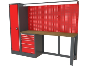 Funkcjonalne i przestronne stanowisko warsztatowe przeznaczone do pracy w warsztatach, serwisach technicznych oraz profesjonalnych garażach. Zestaw składa się z solidnych elementów modułowych, zapewniających wysoką trwałość, komfort pracy oraz dużą powierzchnię roboczą.