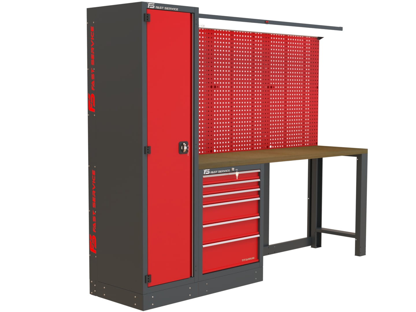 Zestaw MIDI-1 to doskonałe rozwiązanie dla warsztatów technicznych, serwisów oraz stanowisk montażowych, które wymagają dużej przestrzeni roboczej, doskonałej organizacji narzędzi oraz mocnego oświetlenia LED nad całą powierzchnią roboczą.