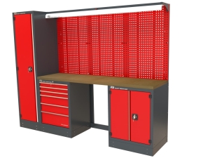Funkcjonalne i trwałe stanowisko warsztatowe zaprojektowane z myślą o profesjonalnych serwisach, warsztatach technicznych i wymagających użytkownikach. Konstrukcja zestawu zapewnia dużą powierzchnię roboczą, świetną organizację narzędzi oraz wysoką ergonomię pracy.